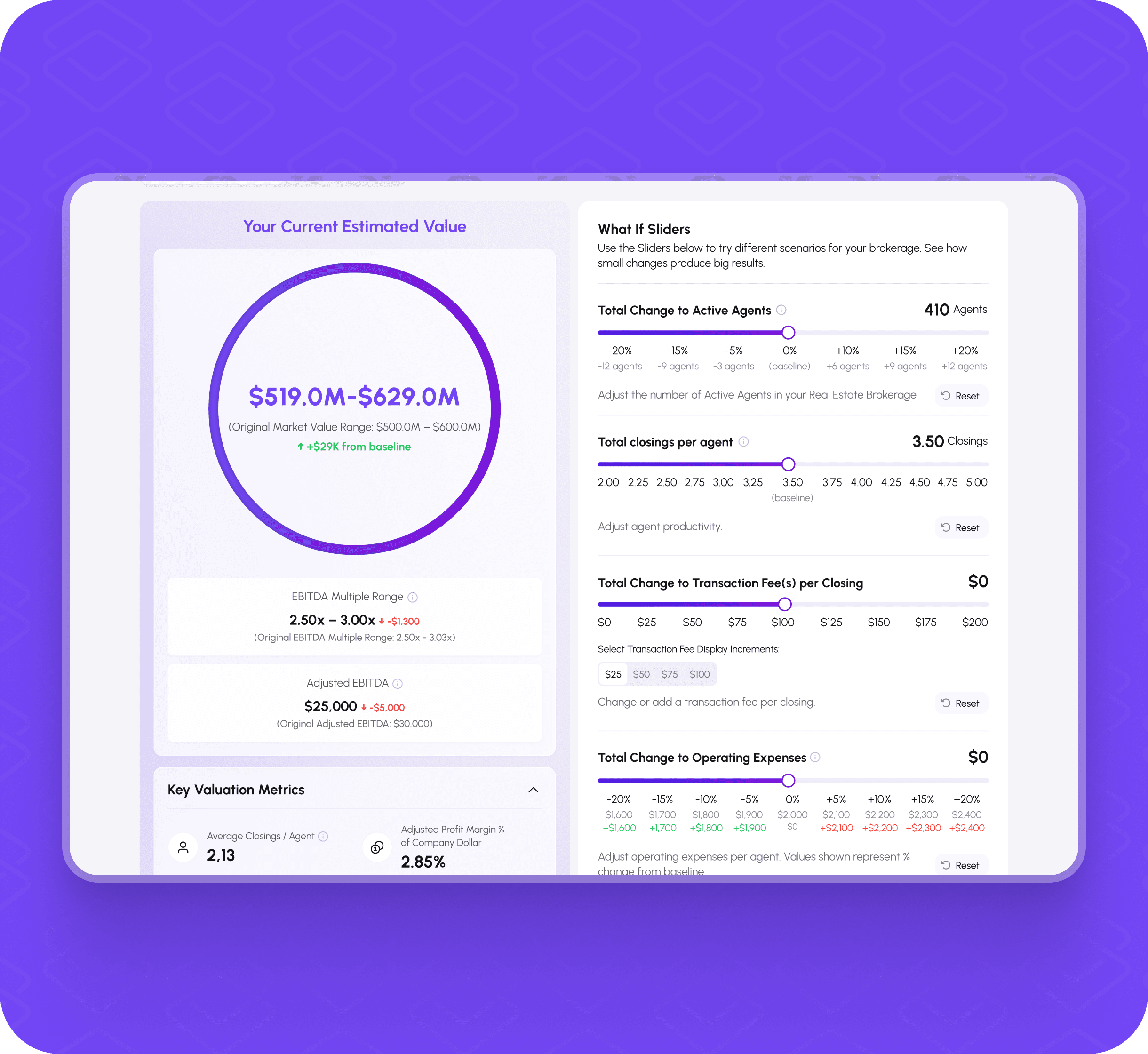 Most real estate brokerage owners have no idea what their business is worth. The industry runs on gut instinct, back-of-napkin math, and conversations with brokers who may or may not understand financial modeling. When it comes time to sell, merge, or plan an exit, owners are flying blind.