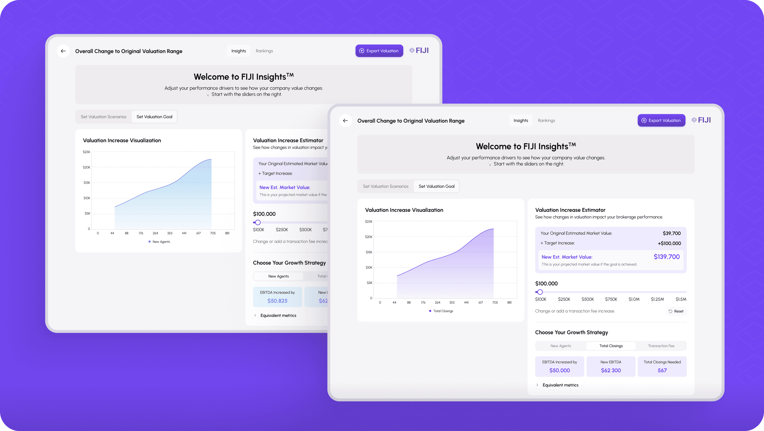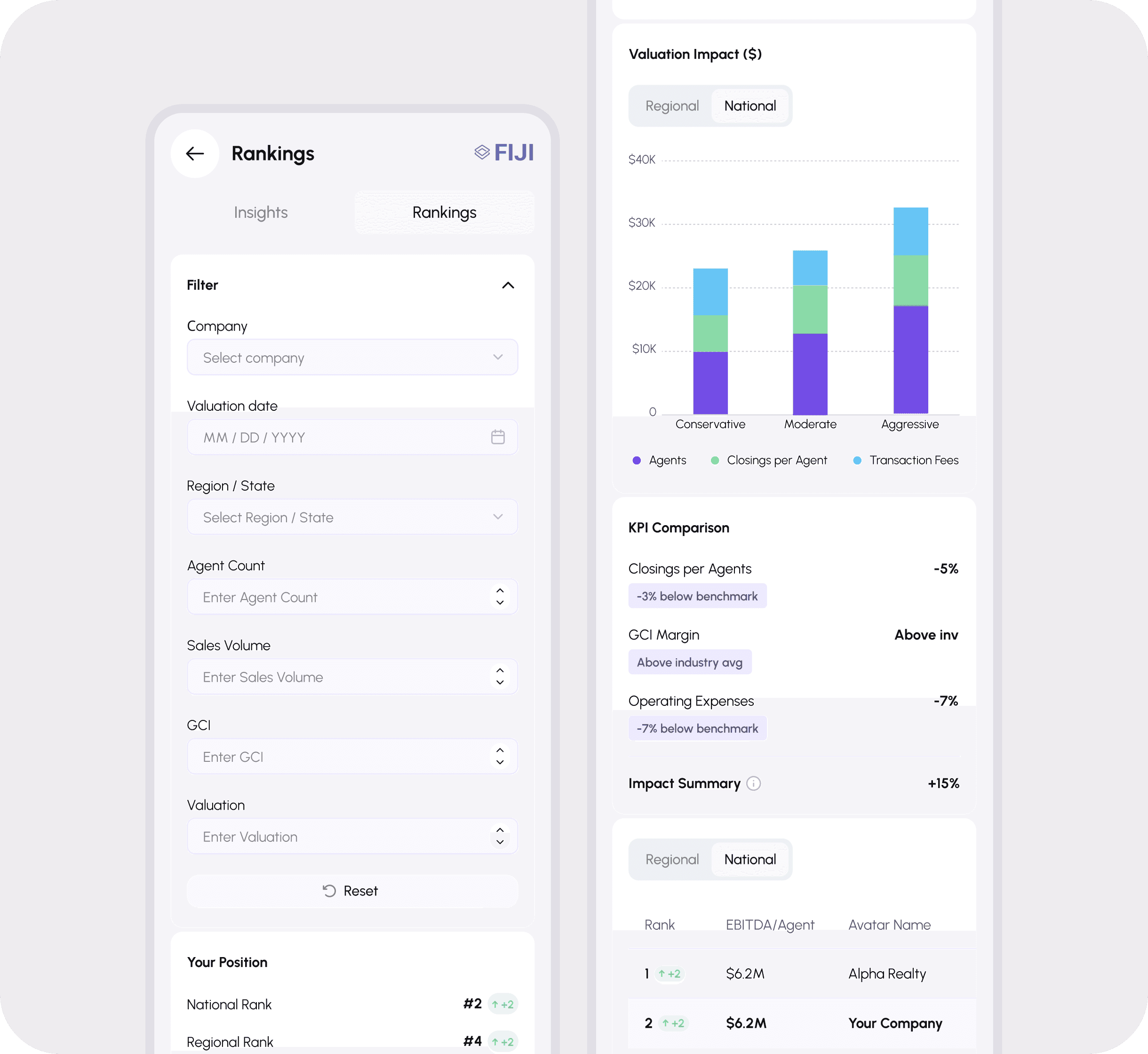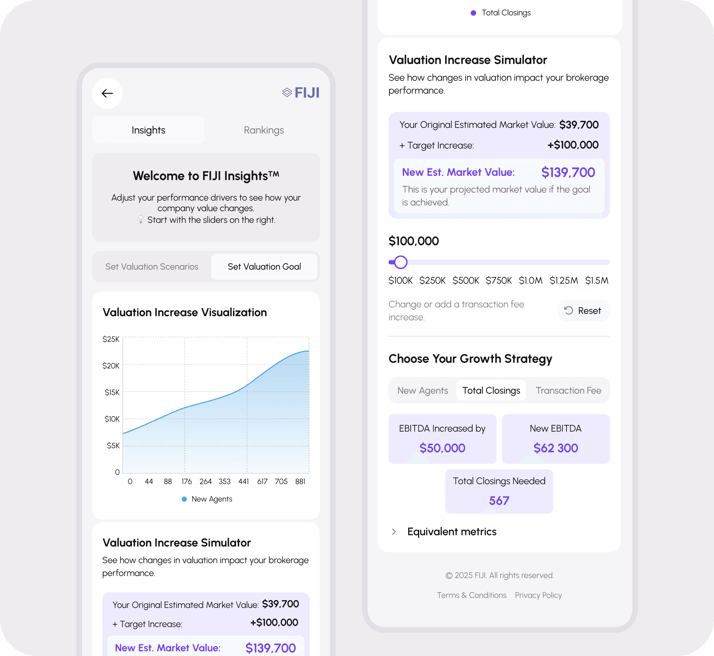 FIJI Insights set out to change that — a platform purpose-built to give residential real estate brokerages and teams accurate, data-driven valuations, then connect them with acquisition-ready buyers through a secure marketplace. It is not a generic business tool. It speaks the language of GCI, company dollar, agent count, commission splits, and MSA adjustments.